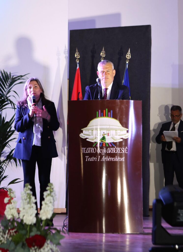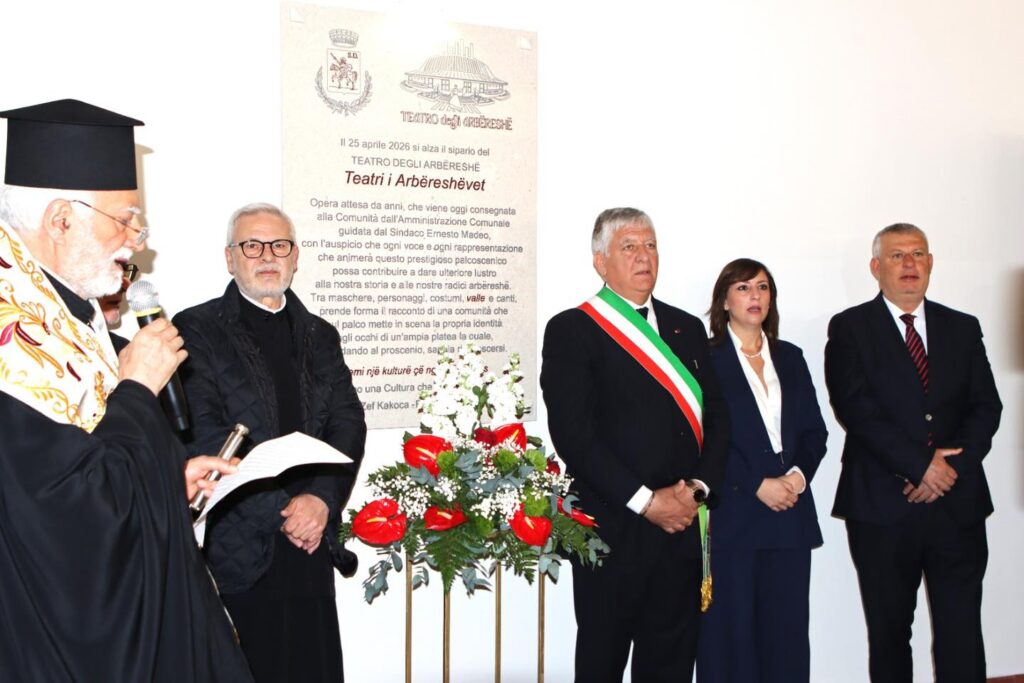 Mikpritja e kësaj ngjarjeje të rëndësishme u bë nga kryetari i komunës së San Demetrio Corone, Ernesto Madeo, i cili hapi dyert e një hapësire të re kulturore për një festë që tejkaloi kufijtë ceremonialë. Ndërkohë, delegacioni nga Shqipëria, i kryesuar nga prefekti i qarkut Tiranë, Shkëlqim Hajdari, solli një atmosferë të gjallë artistike në skenën e teatrit të sapoinauguruar, përmes një programi të pasur me artistë të njohur si Fatos Qerimi, orkestrën e SIGAL-it dhe grupe të tjera artistike nga hapësira mbarëshqiptare.