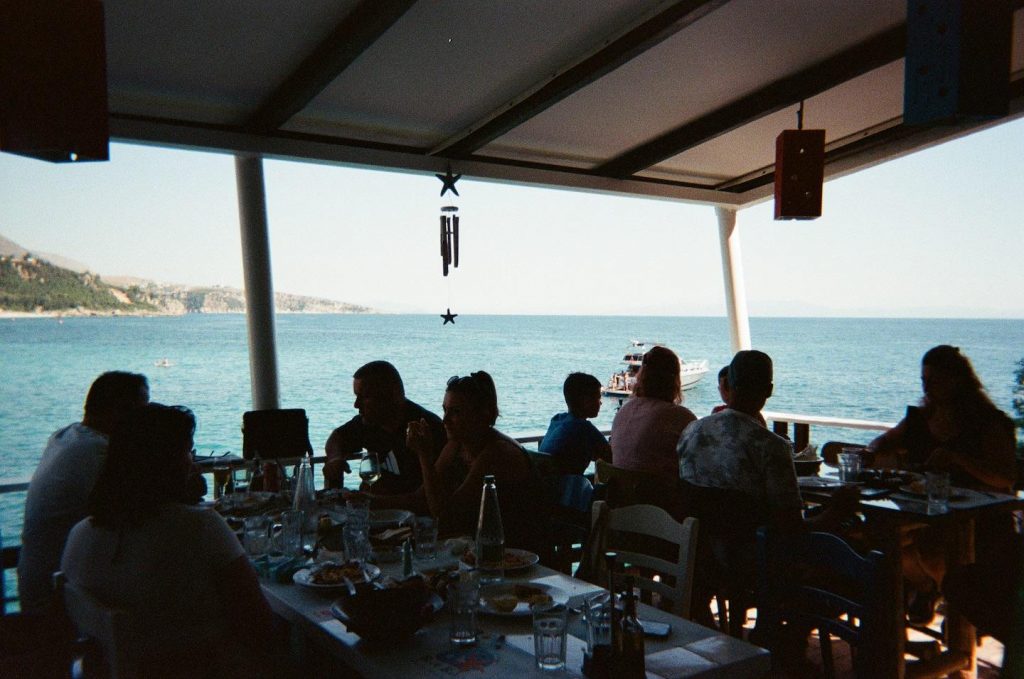 Në muzg, bregdeti ishte plot me familje dhe çifte. Për darkë, gjetëm një restorant me ushqime deti – me vlerësime pozitive në internet.