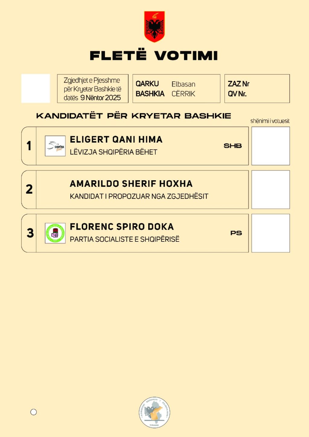 Publikohen fletët e votimit për zgjedhjet e pjeshme lokale të 9 nëntorit