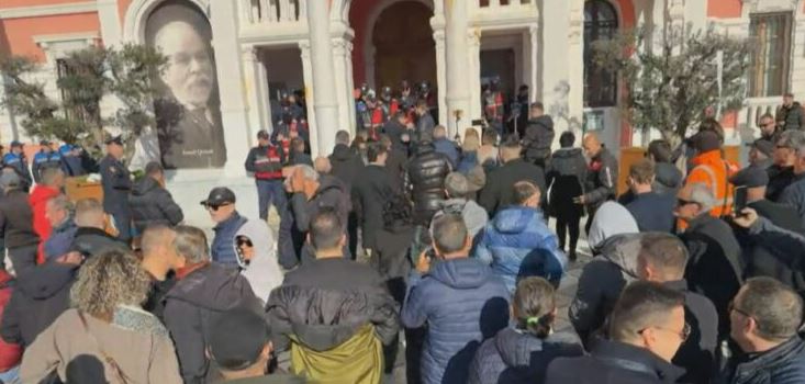 Në sheshin përpara bashkisë janë mbledhur një numër i konsiderueshëm qytetarësh, të cilët janë përplasur policinë duke tentuar të futen në ambientet e brendshme të bashkisë.