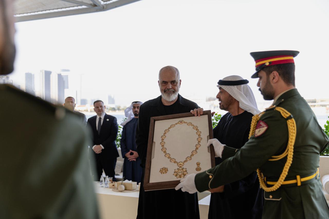Kryeministri Edi Rama ka ndarë disa foto nga vizita e tij në Emiratet e Bashkuara Arabe, ku u nderua me medaljen më të lartë të këtij shteti, nga presidenti Mohamed bin Zayed Al Nahyan.