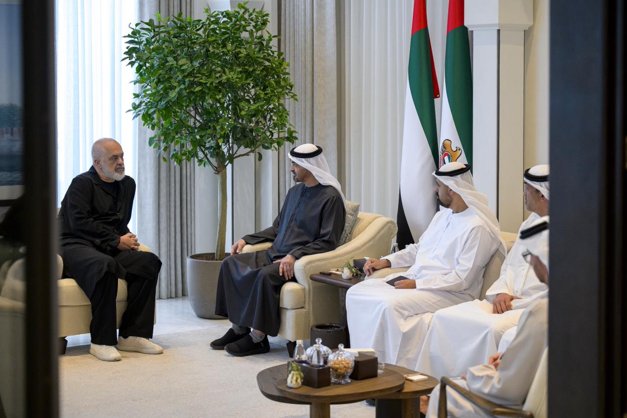 Kryeministri Edi Rama, gjatë vizitës në Abu Dhabi, u prit sot në takim nga Presidenti Sheikh Mohammed Bin Zayed. Rama ndau pasditen e sotme pamjet e publikuara nga Agjencia e Lajmeve të Emirateve (WAM) lidhur me këtë takim. Ndërsa e cilësoi takimin vëllazëror, kryeministri Rama shprehu bindjen e fortë se për paqedashësit e ndërtuesit vullnetmirë të së ardhmes, më e mira është e gjitha përpara.