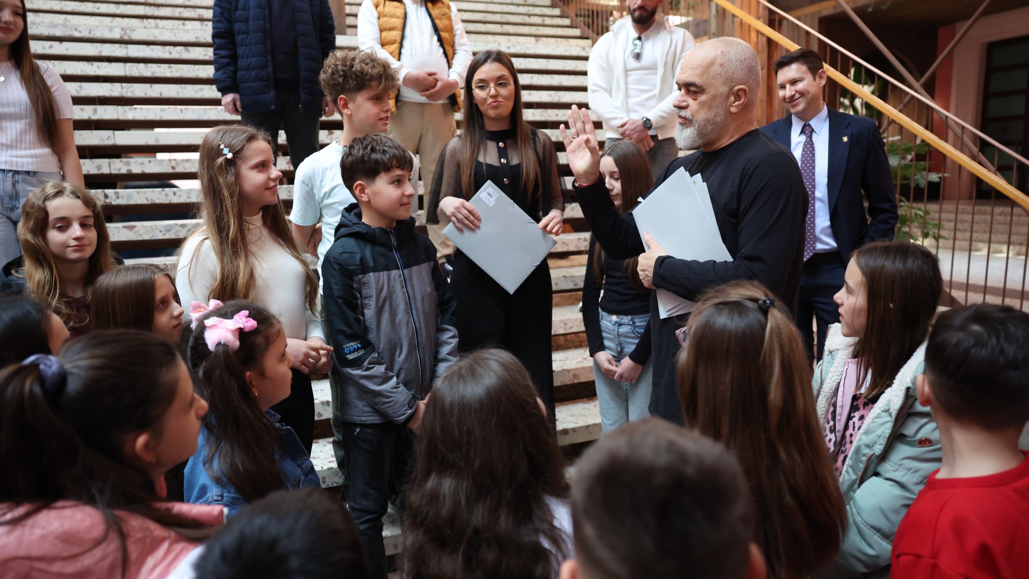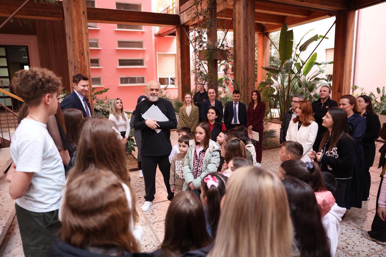 Kryeministri Edi Rama uroi sot festën e 7 Marsit, Ditën e Mësuesit, duke ndarë një mesazh të veçantë së bashku me fëmijë shqiptarë nga Manastir.