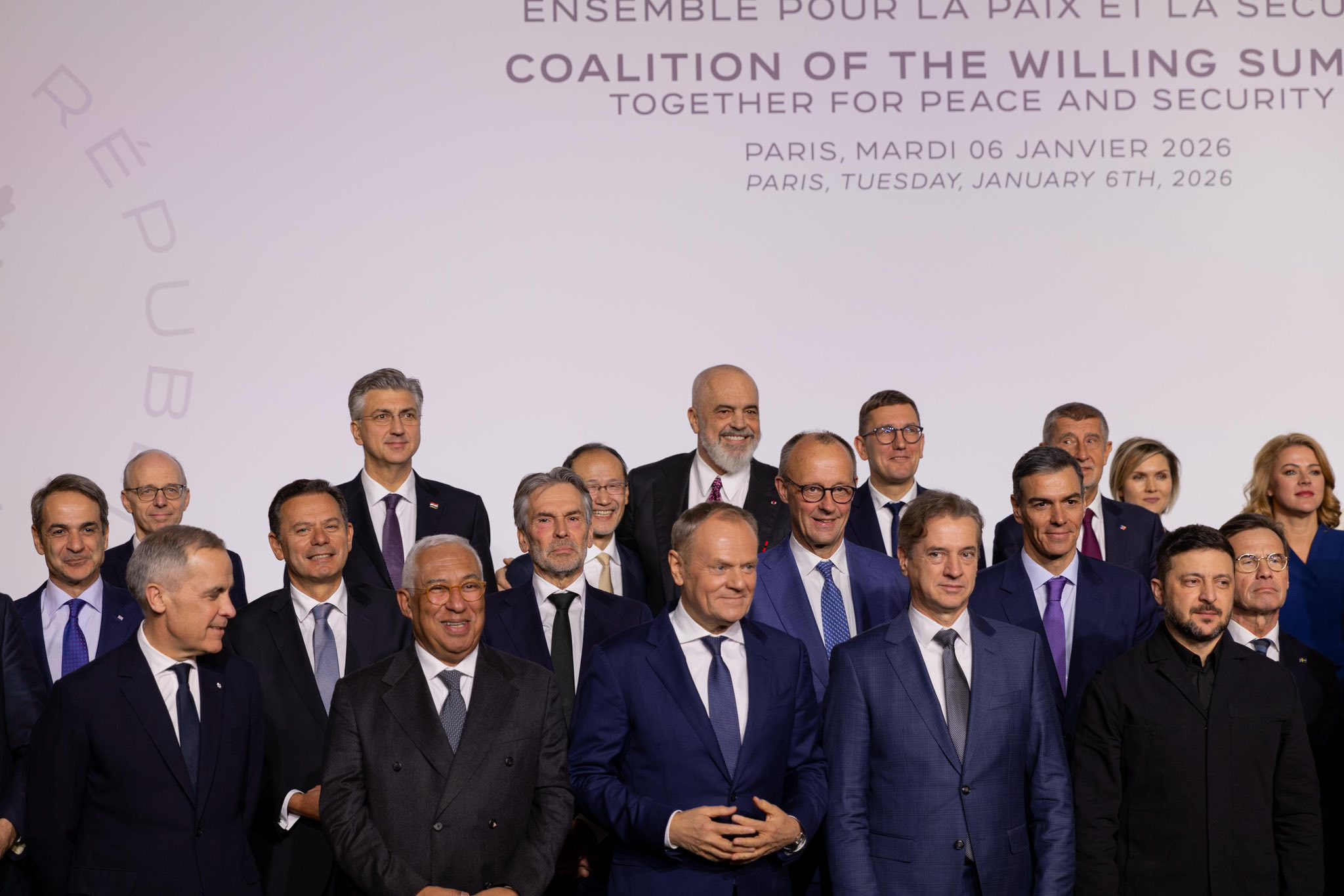 Rama ndau në rrjetet sociale një imazh nga ceremonia zyrtare, të cilën e shoqëroi me diçiturën: “Foto familjare e liderëve pjesëmarrës në takimin ‘The Coalition of the Willing’”. Samiti i cili mblodhi më shumë se 27 udhëheqës shtetesh dhe qeverish, kishte si objektiv madhor: finalizimin e një marrëveshjeje konkrete për garancitë e sigurisë së Ukrainës.