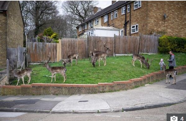 Banorët e lagjes i kanë vënë re drerët nga dritarët e tyre dhe i kanë fotografuar, por nuk kanë dalë nga shtëpitë e tyre pasi nuk lejohet. Në Harold Hill, zona ku janë parë drerët, është diçka normale që herë pas herë të shfaqet një i tillë, por jo kaq shumë së bashku. Vendasit kanë treguar se kjo gjë është bërë e përditshme tashmë, pasi rrugët bosh, të qeta dhe plot gjelbërim, duken një habitat mjaft i mirë për këto kafshë.