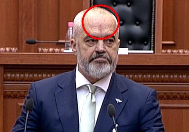 Por ajo që ra në sy në daljen e Ramës ishte një shenjë e kuqe që ai kishte në mesin e ballit të tij, për të cilën duket se ka marrë ndonjë goditje së fundit.