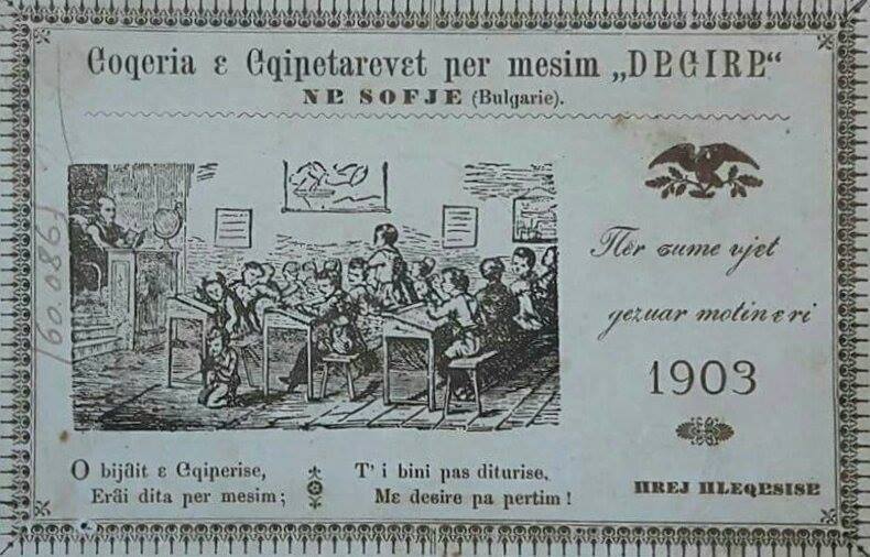 Një urim në gjuhën shqipe për vitin e ri 1901 dhe urimi për vitin e ri 1908 nga Shoqëria e Shqiptarëve për mësim ‘’Dëshirë’’, në Sofje të Bullgarisë.
