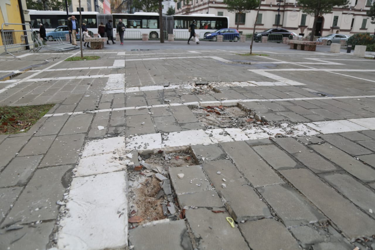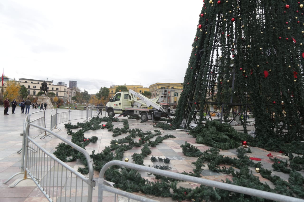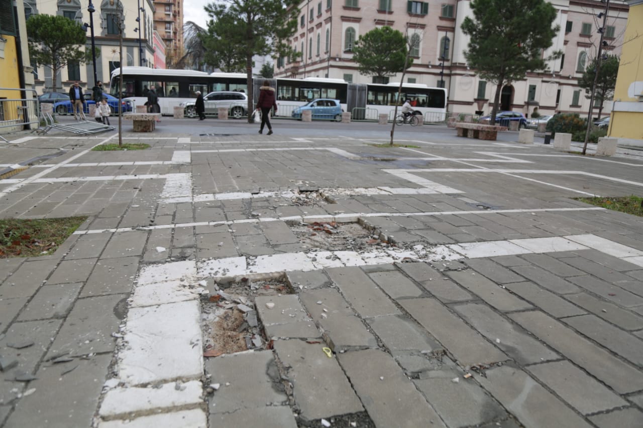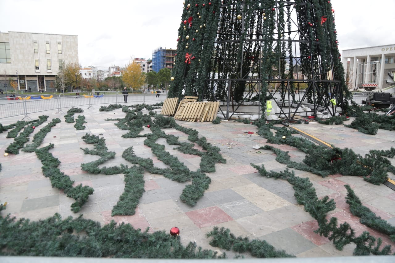 Foto-reportazhi nga Tirana sot/ Godina me xhama të thyer, trotuare me pllaka të shkulura e pemë zbukurimesh përtokë