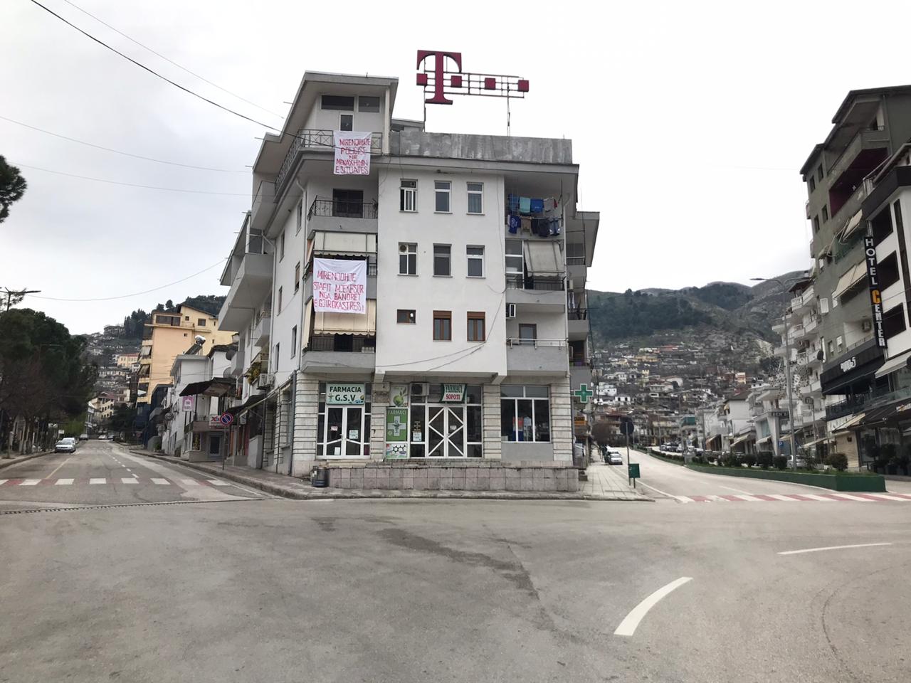 FOTO/ “Zbatoni rregullat, do t’ia dalim”, në rrugët e Gjirokastrës parrulla për t’u mbrojtur nga koronavirusi