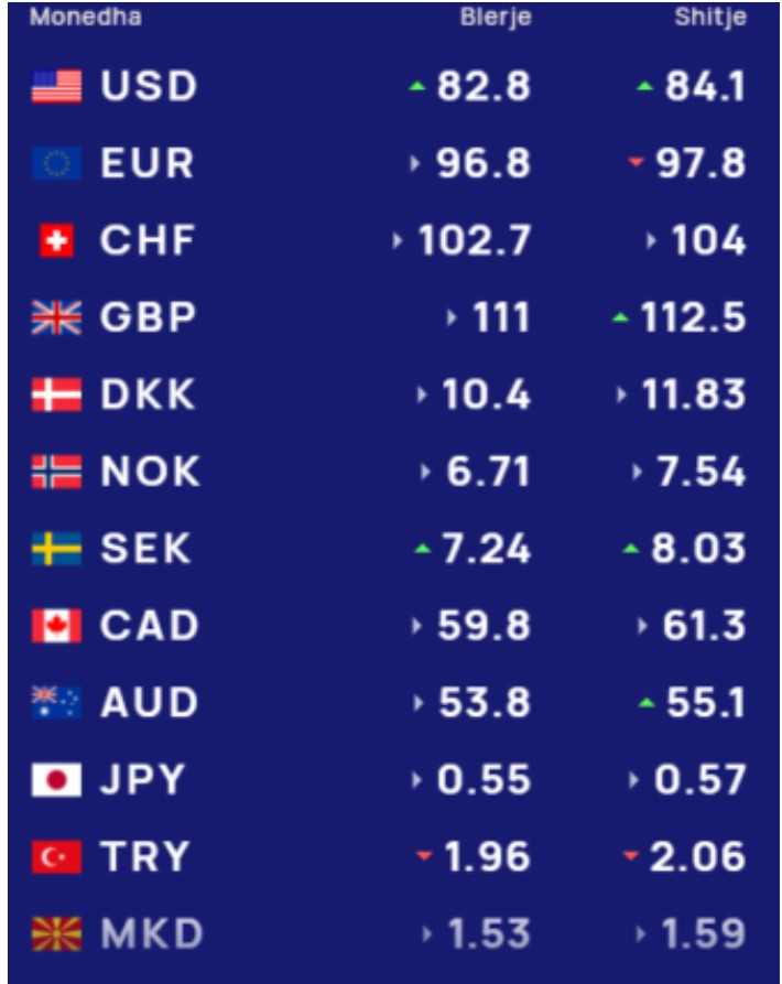 Ndërsa paundi britanik do blihet me 111 lekë dhe do shitet me 112.5 lekë.
