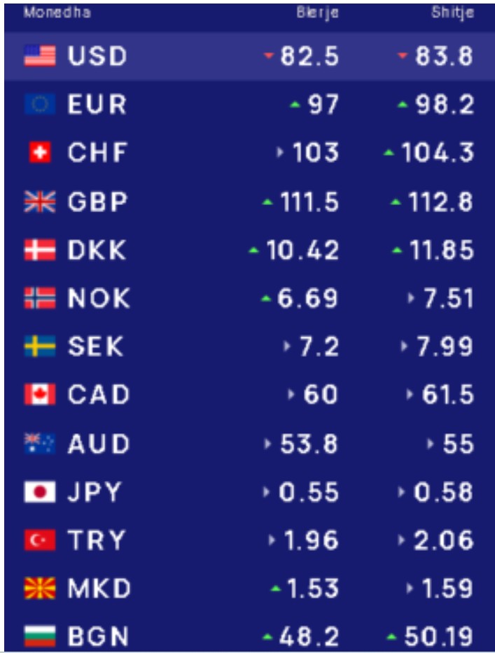 Ndërsa paundi britanik do të blihet me 111.5 lekë dhe do të shitet me 112.8 lekë.