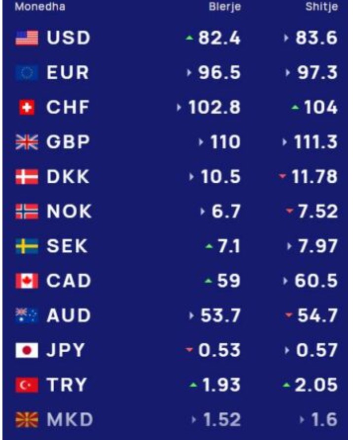 Ndërsa paundi britanik do blihet me 110 lekë dhe do shitet me 111.3 lekë.