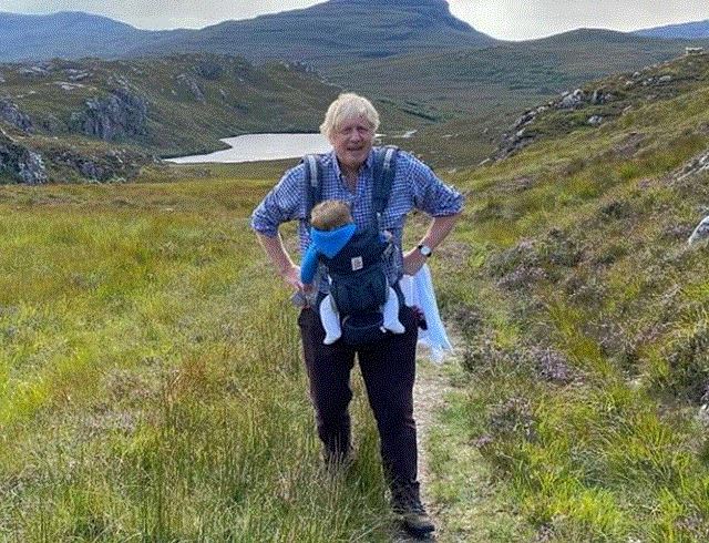 Pas vitit të vështirë që kaloi për shkak edhe të infektimit me koronavirus, kryeministrit Johnson shfaqet i relaksuar, teksa ngjitet në malet e Skocisë së bashku me të fejuarën Carrie Symonds dhe beben e tyre.