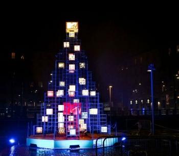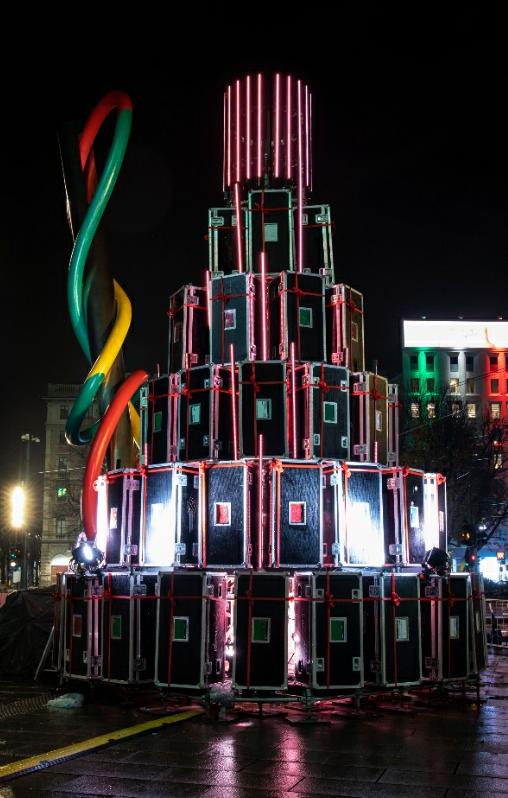 “Bredhi i muzikës”, në versionin hi-tech, i përbërë nga 40 kube ndriçuese është një homazh i grupeve më të njohura muzikore që prej 1981 e deri më sot.