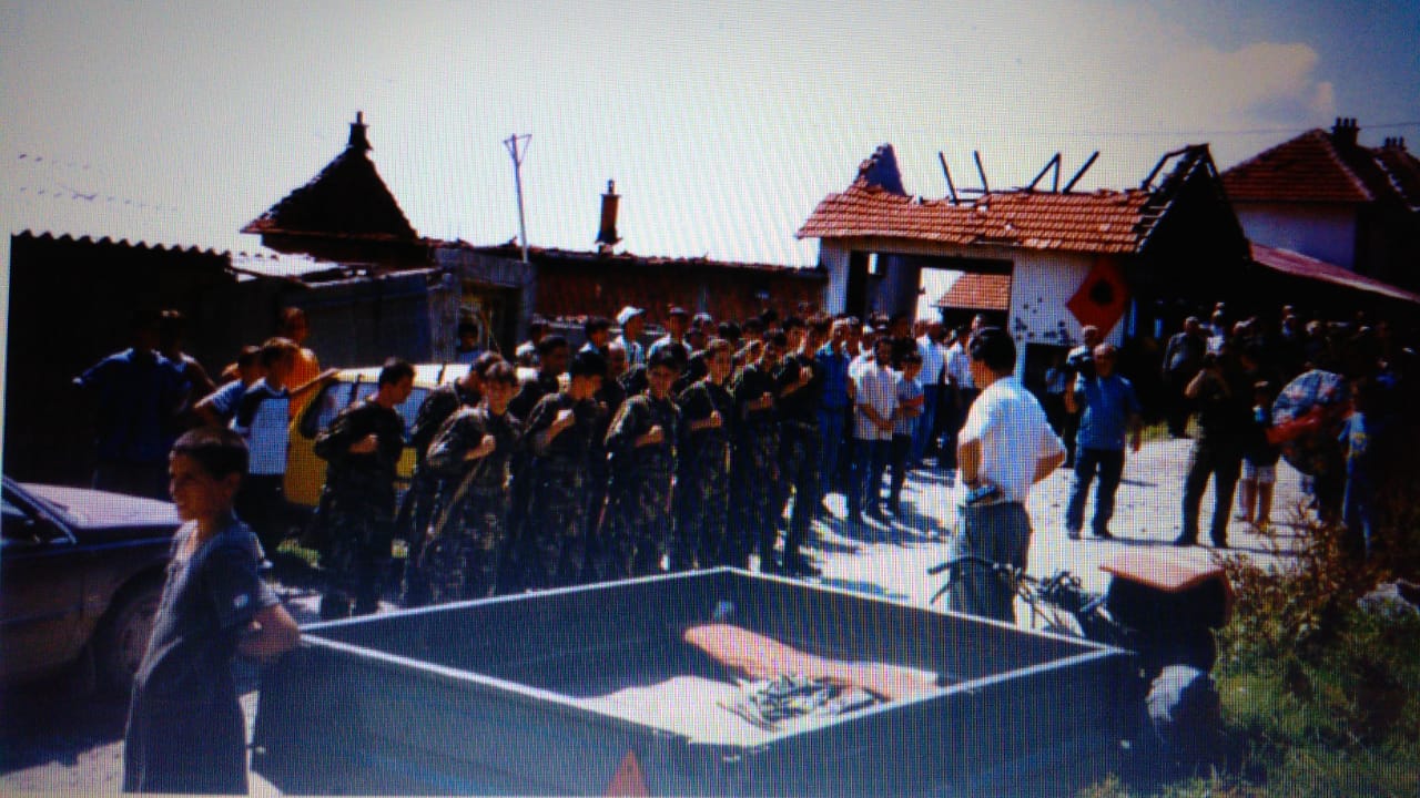 Skender na çoi në një djerrinë në periferi të Burrelit ku kishim marrë të dhënat se ndodhej reparti ushtarak ku stërviteshin rekurtët e rinj të “UÇK”.Gjetëm një kazermë. Dëgjojmë zëra në anën tjetër të murit me tela me gjemba. Një kor, një marshim amerikan i dëgjuar në një mijë filma të luftës. Imagjinoni një togë të rekrutëve që trajnohen.Shfaqet një patrullë e armatosur me pushkë dhe Kallashnikov.Ata na drejtojnë armët.