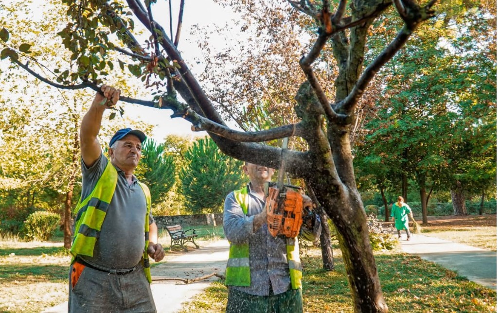 Stina e vjeshtës nuk ndalon mirëmbajtjen te parku “Rinia”