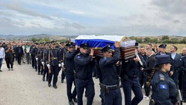 Mijëra qytetarë i dhanë lamtumirën policit të vrarë, Afrim Bunjaku, i cili sot u shpall hero. Kryeministri Albin Kurti u shpreh se para se ai të varroset si hero në tokën e tij, portreti dhe profili i tij të skalitet në mbamendjen kolektive.