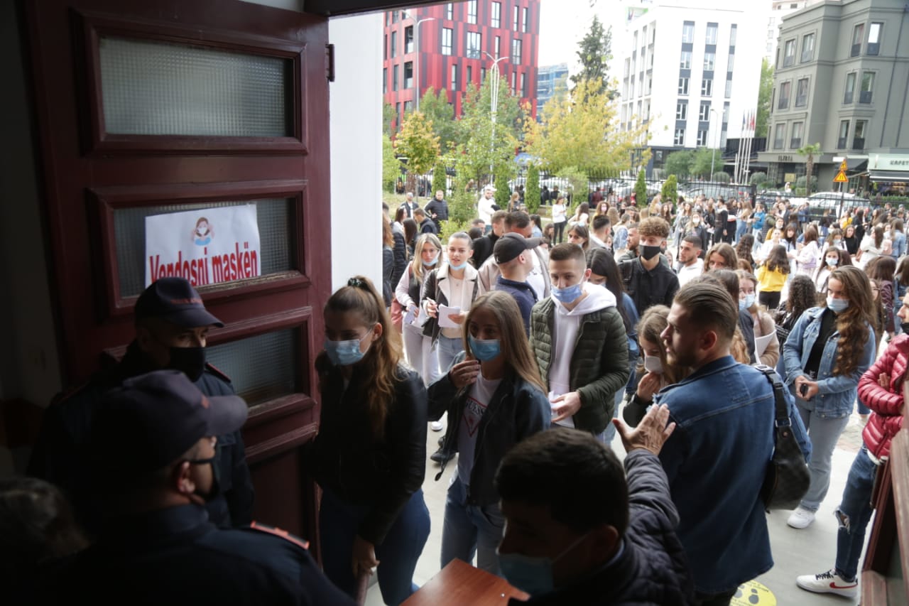 Studentet ngjeshën me njëri tjetrin në salla të vogla , pa maska e pa gjë tjetër në mëshire të fatit ! Ata vërtete janë të gëzuar që kthehen aty por do duhej që ky gëzim të mbrohej, jeta e tyre dhe e pedagogeve po kaq dhe atë nuk mund ta mbrojnë fakultetet apo Universitetet të vëna perballë faktit të kryer.