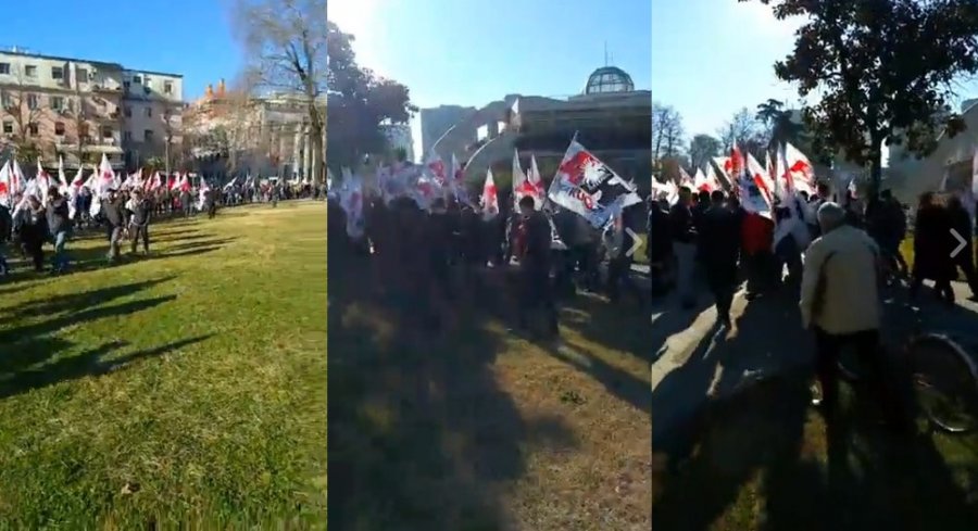Policia ka ndërhyrë dhunshëm duke arrestuar, por protestuesit po shkojnë te drejtoria e policisë për të kërkuar lirimin e shokëve të arrestuar.