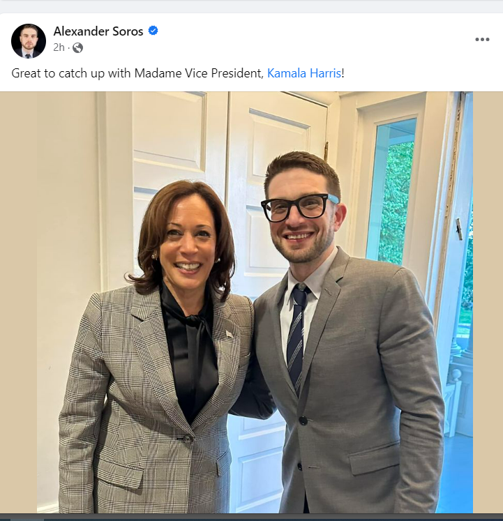 “Great to catch up with Madame Vice President, Kamala Harris!”- shkruan Alexander Soros.