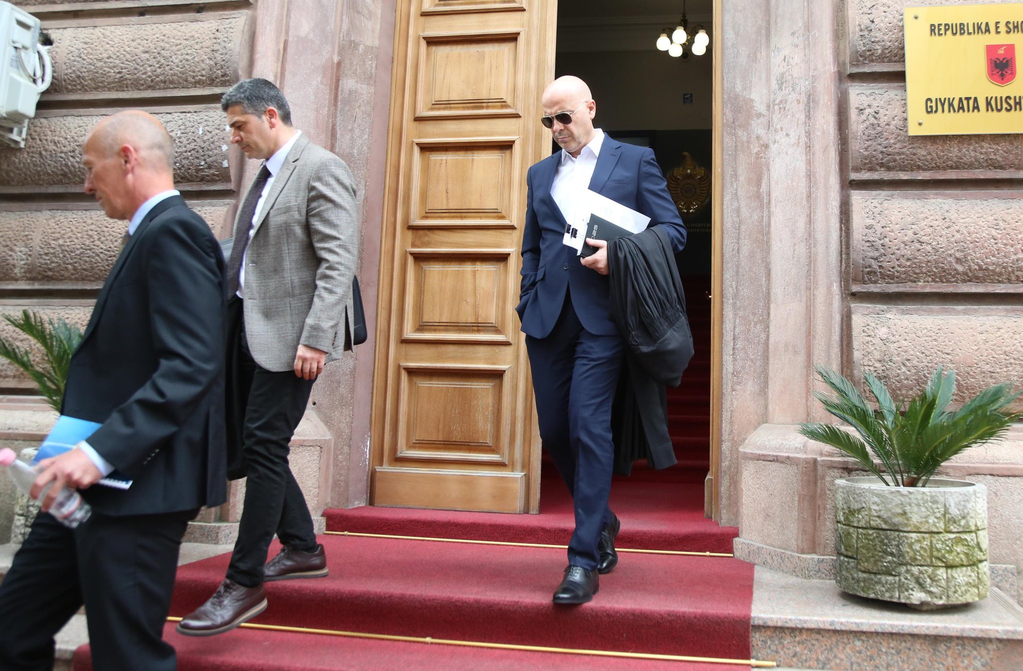 Në foton e dytë: Dy prokurorët e SPAK-ut dhe prokurori amerikan i OPDAT-it, duke dalë nga Gjykata Kushtetuese.