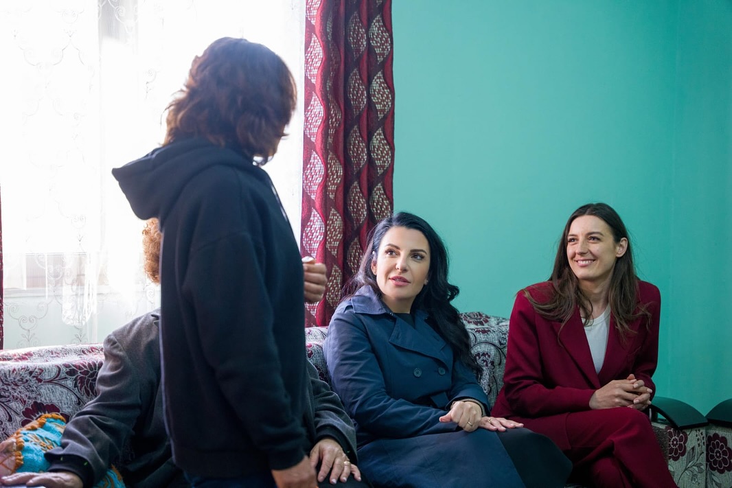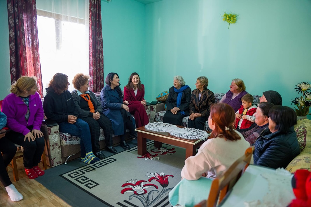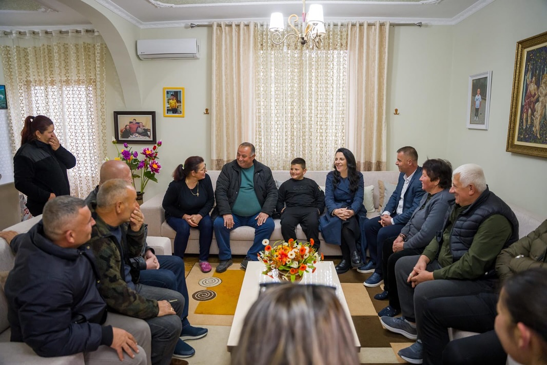Belinda Balluku vizitë te familja e Baki Kocaqit. Takon edhe vajzat e gratë në Cerven