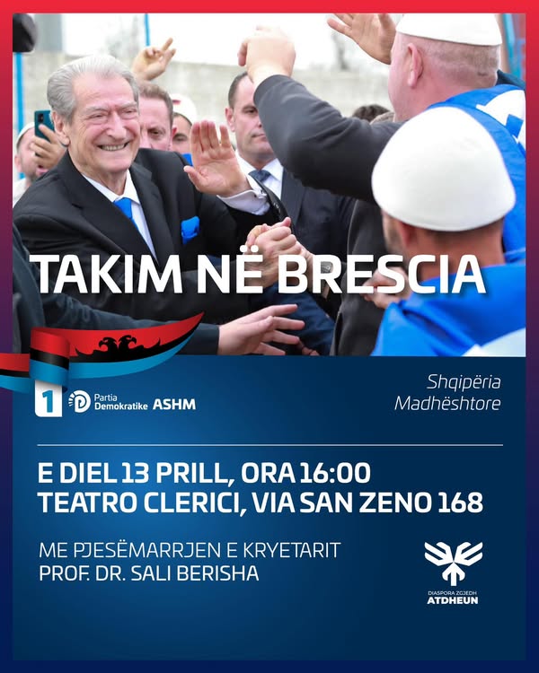 “Të dashur miq, më 13 prill, ora 16:00 zhvillojmë takimin e radhës me diasporën në Brescia të Italisë! Të gjithë bashkë t’i bashkohemi “Shqipërisë Madhështore”