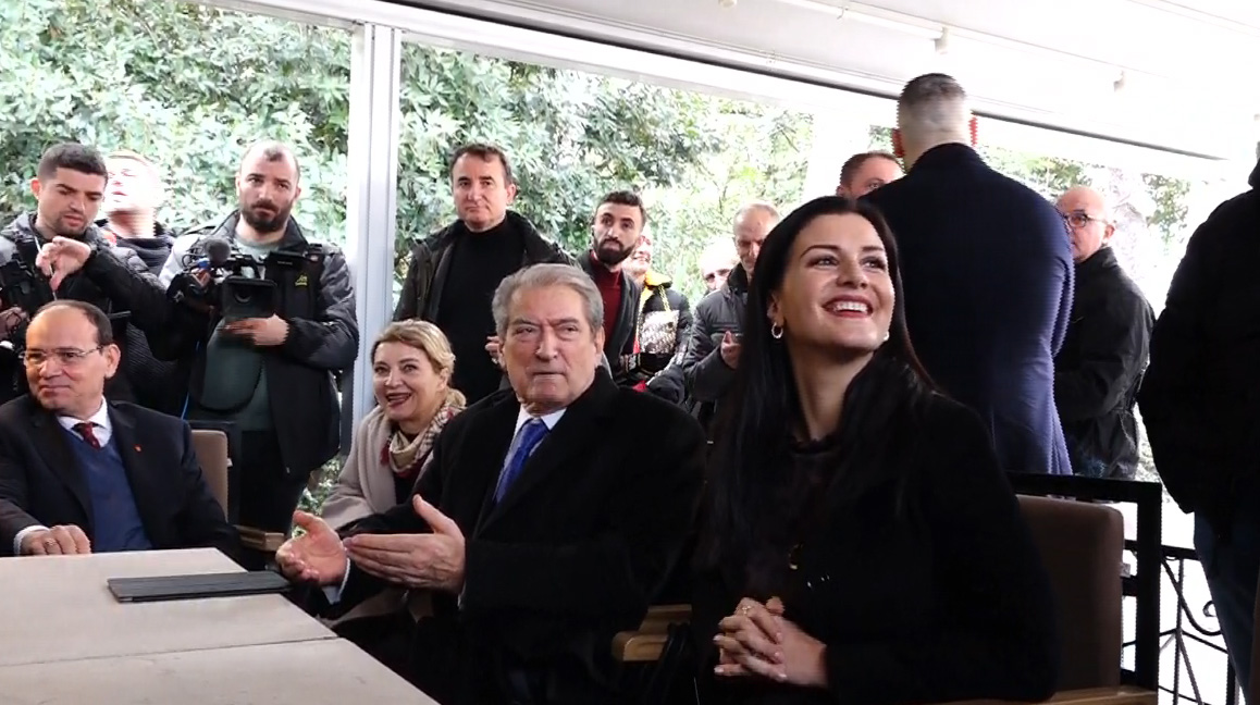 Siç shihet dhe në pamje, Berisha është ulur në kafene, i shoqëruar nga mbështetësit e tij, ku në krah të tij janë ulur Floriana Garo, Bujar Nishani e të tjerë, si dhe gazetarët, të cilëve u ka kërkuar të lënë mikrofonët dhe të ulen për kafe, meqë siç theksoi vetë ai, nuk i ka ftuar për Vit të Ri.