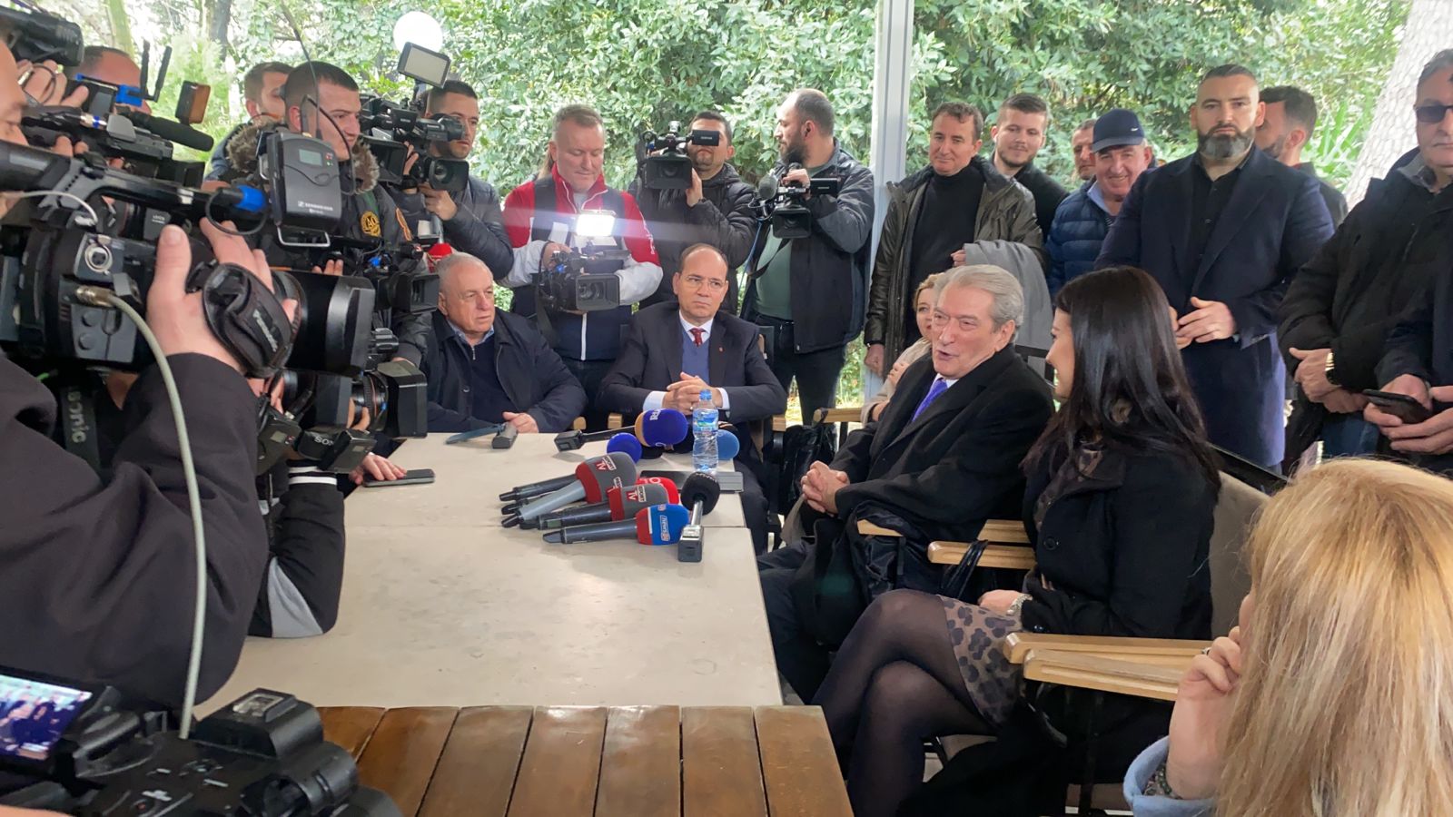 Berisha ulet me gazetarët në kafenenë pranë selisë blu (FOTO)