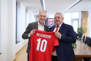 “Bernd Neuendorf, Presidenti i ri i Federates Gjermane te Futbollit ka qenë gazetar. Kishim shumë të përbashkëta për të folur për futbollin dhe në mënyrë të veçantë për gazetarinë. Ku i dihet”-shkruan Anila Basha, gazetare e njohur dhe anëtare e Komitetit Drejtues të FSHF.