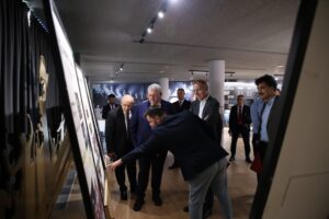 Duka pret njëshin e futbollit gjerman/Bernd Neuendorf, Presidenti i ri i Federates Gjermane te Futbollit foto me Anila Bashën, anëtare e Komitetit drejtues të FSHF