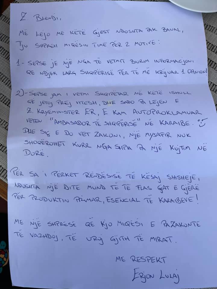 Pafund kënaqësi të takosh në një ishull të vogël të Karaibeve, St Barth, me 10 mijë banorë, një djalë shqiptar që mban një pozicion goxha interesant. Erjon Lulaj me origjinë nga Vlora është rritur në Itali e shkolluar në Paris, por njeh Shqipërinë më mirë se shume nga ne që jetojme aty. Mbi të gjitha ruan me mijera km larg një dashuri të adhe për vendin e tij. Dhe në udhetime e kam kuptuar më mirëe atë thënien e vjetër të pasaportes sonë të viteve ‘30. Ji krenar sa herë takon një bashkeatdhetarin tënd ne “dhe” të huaj…