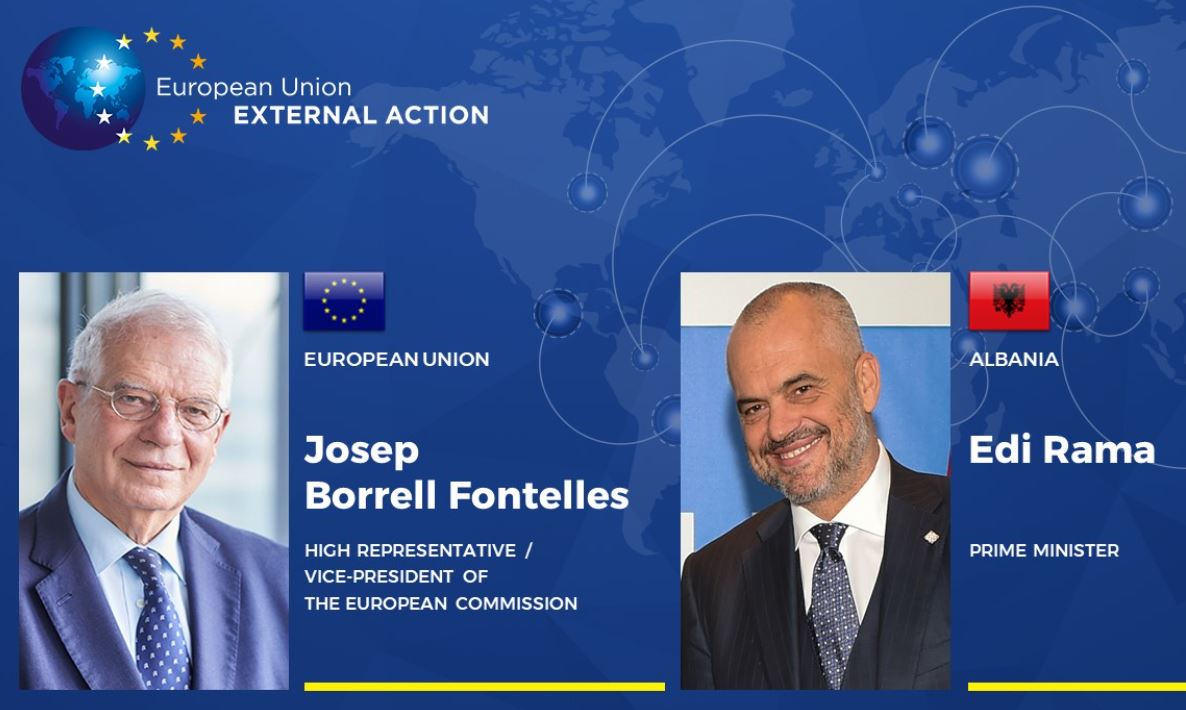Përfaqësuesi i lartë i Bashkimit Evropian për Politikë të Jashtme dhe Siguri, Josep Borrell ka zhvilluar një bisedë online me kryeministrin Edi Rama për të cilin ka informuar më pas nëpërmjet një mesazhi në “Twitter”. Borrell shkruan se mirëpret angazhimin e Shqipërisë për të ecur përpara në rrugën e pranimit në BE duke e cilësuar thelbësore ruajtjen e dinamikës së marrëdhënies së BE-së me Ballkanin Perëndimor. “Unë e mirëpres angazhimin e Shqipërisë për të ecur përpara në rrugën e pranimit në BE. Siç u diskutua me Kryeministrin Rama, është thelbësore të ruhet dinamika e marrëdhënies BE-Ballkan Perëndimor. Me Shqipërinë që luan një rol të rëndësishëm”, deklaron Borrell.