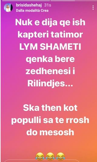 “Nuk e dija që ish-kapteri tatimor Lym Shameti qenka bërë zëdhënës i Rilindjes, s’ka thënë kot populli, sa të rrosh do të mësosh”,- shprehet Shehaj në një postim në rrjetet sociale. Mësohet se Shehaj ka në dispozicion dosjen e plotë të Murrizit ku është hetuar për korrupsion, por që në gjykatën e lartë e mbrojti një avokat, sot deputet i PS-së. Nuk dihet nëse do ta përdorë LSI këtë dosje, por faktikisht ajo quhet e mbyllur.