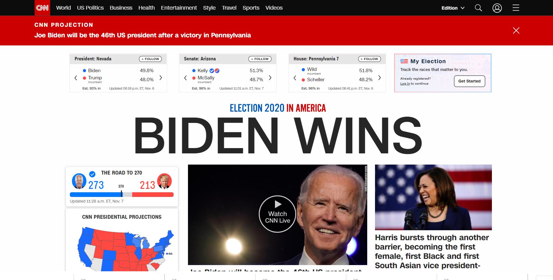 Sipas projeksioneve të gjigandit mediatik rezultati i votimeve në Pensilvani i jep përparësi Biden si President i 46 i Amerikës. Me 20 votat elektorale të Pensilvanisë, Biden tani ka një total prej 273 votash elektorale.