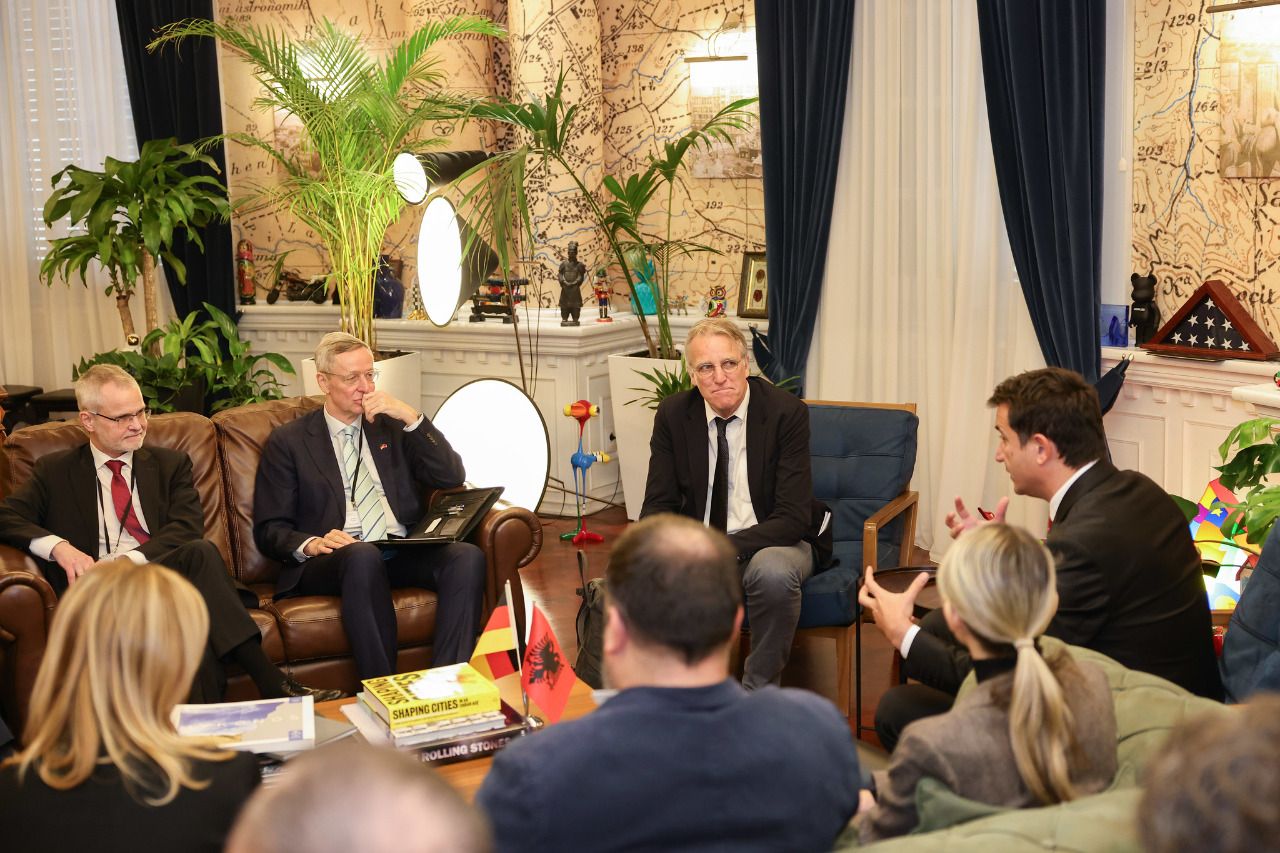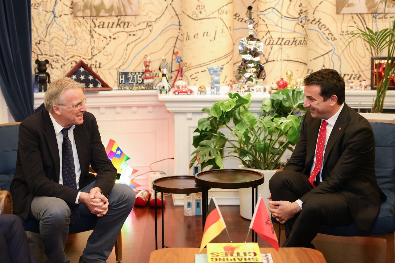 Delegacioni që shoqëron Presidentin e Gjermanisë, Frank Walter Steinmeier, i cili nisi sot një vizitë zyrtare dyditore në Tiranë, u prit edhe nga kryebashkiaku Erion Veliaj. Në bisedën me ta, Veliaj tha se veç projekteve të suksesshme që Shqipëria dhe Tirana ka me GIZ-in dhe KFW-në, po shihet mundësia për bashkëpunime në fusha të reja, me impakt në ekonomi, e sidomos ato në energjinë e rinovueshme.