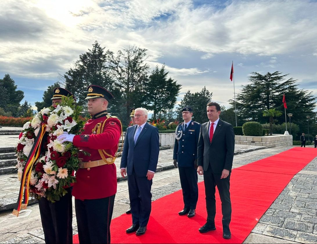Kryetari i Bashkisë së Tiranës, Erion Veliaj shoqëroi sot Presidentin e Republikës Federale të Gjermanisë, Frank-Walter Steinmeier në vendosjen e një kurore me lule në memorialin e Dëshmorëve të Kombit “Nënë Shqipëri”.