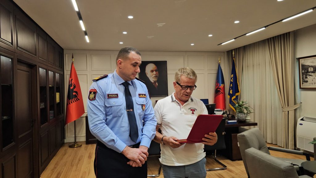 Dega e gazetarëve të Fierit ka vlerësuar me “Certifikatë të Mirënjohjes” drejtorin e Përgjithshëm të Policisë së Shtetit, Ilir Proda për bashkëpunimin mjaft të mirë, transparent dhe në kohë, mes Policisë së Shtetit dhe medias, duke e konsideruar këtë bashkëpunim, si një model me standarde europiane, në funksion të interesit publik. Proda priti një përfaqësi të Unionit të Gazetarëve Shqiptarë, qarku Fier, në një takim institucional që shënoi një moment domethënës vlerësimi dhe reflektimi mbi arritjet dhe sfidat e përbashkëta.