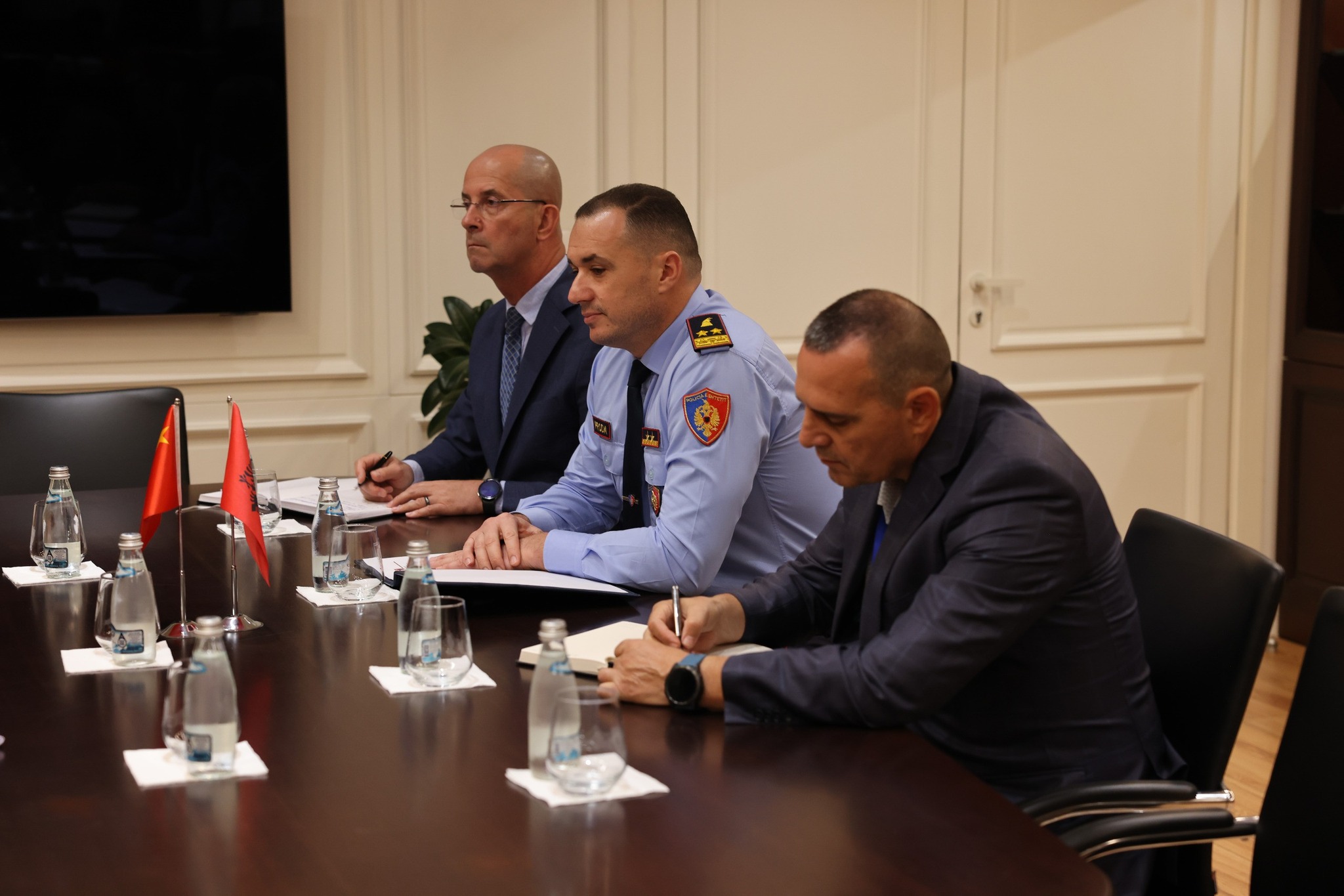 “Drejtor Proda dhe Ministër-Këshilltar Huang u dakordësuan se këto elemente do të jenë përgjigjja më efikase kundër krimit të organizuar ndërkontinental. Gjithashtu, gjatë takimit u diskutua për operacionet e fundit të Policisë së Shtetit, kundër shfrytëzimit për prostitucion, objekt i të cilave kanë qenë shtetase kineze të rekrutuara për të ushtruar këtë veprimtari të kundërligjshme, në apartamente me qira, në vendin tonë. Në vijim të angazhimit policor për ndjekjen penale të shtetasve përgjegjës, ka pasur një qasjeje të integruar institucionale, për t’iu ofruar asistencë shtetaseve të përfshira në këto raste”, njoftoi zyra e kryepolicit për tematikën e bisedimeve.