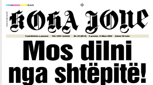 Stafi drejtues i gazetës KOHA JONE, nisur nga situata e pazakontë e corona virusit, vendosi që gazeta të mos botohet deri të hënën, sikurse edhe gazetat e tjera.