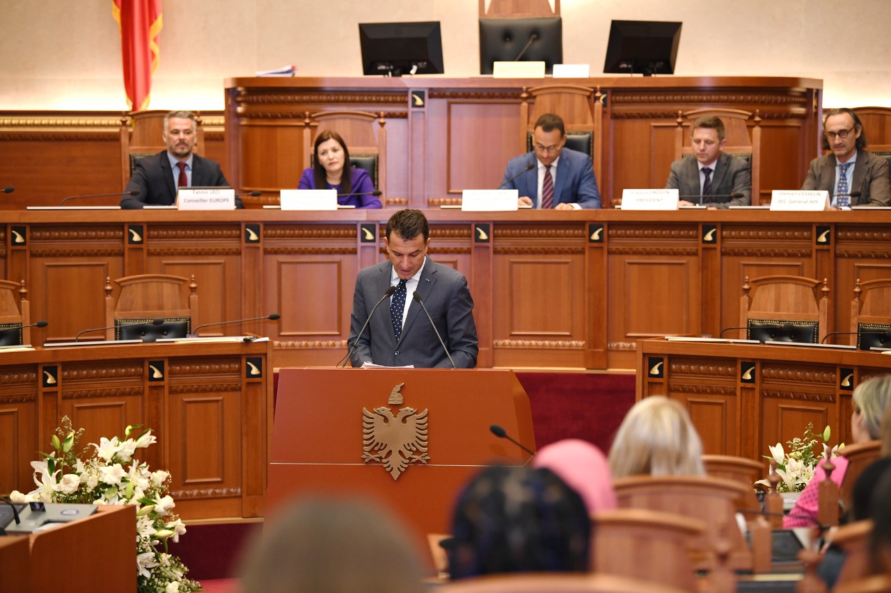 Sesioni u përshëndet edhe nga Presidenti APF-së (Assemblée Parlementaire de la Francophonie), Francis Drouin, dhe Kryetari i Misionit për Europën, Jean-Charles Luperto.
