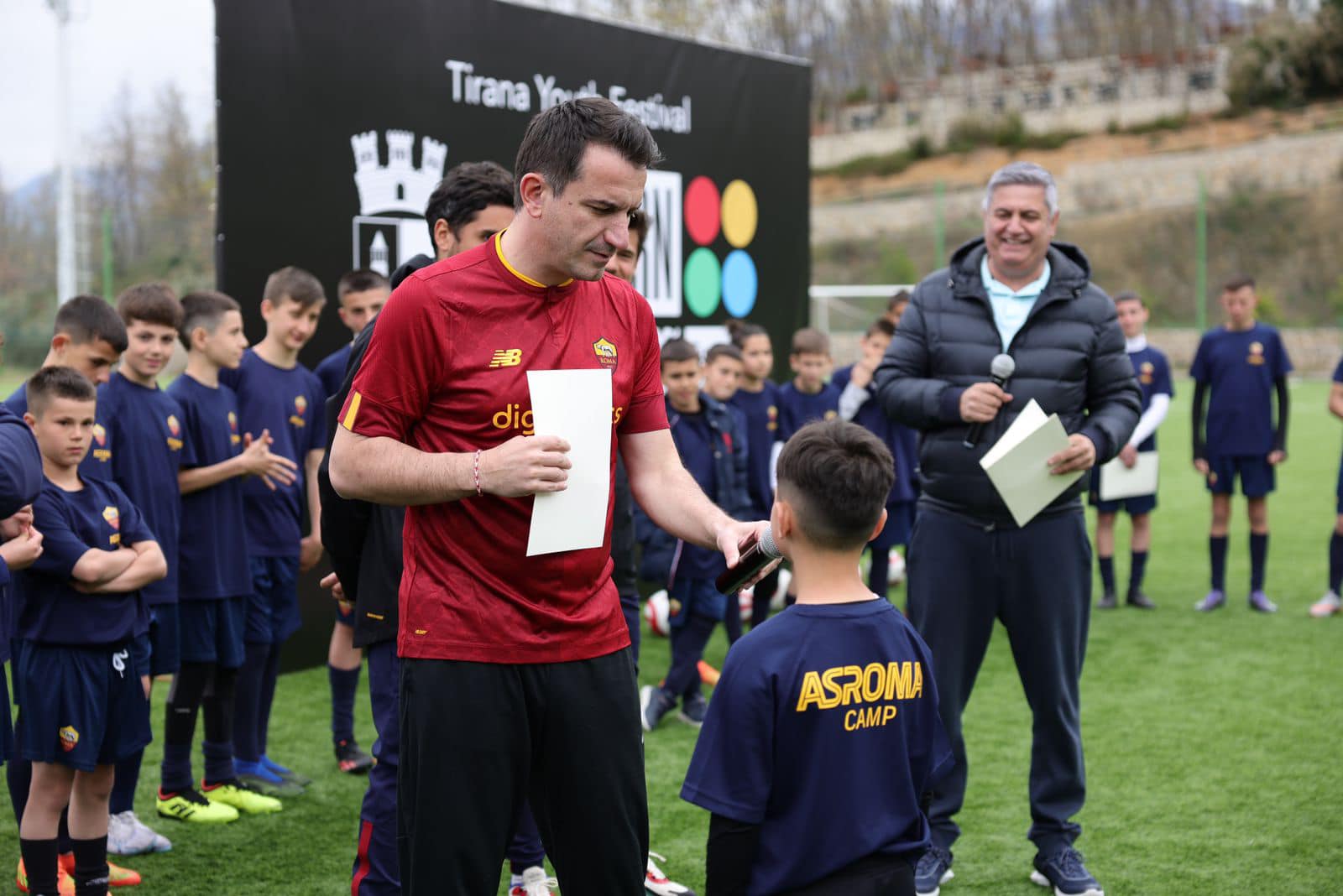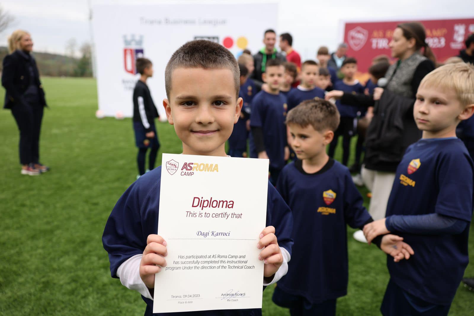“Me fëmijët e AS Roma Camp! – Përfunduan me sukses gjithë seancat stërvitore të sportistëve të vegjël me dy trajnerë të skuadrës italiane”- shkruan Erion Veliaj.