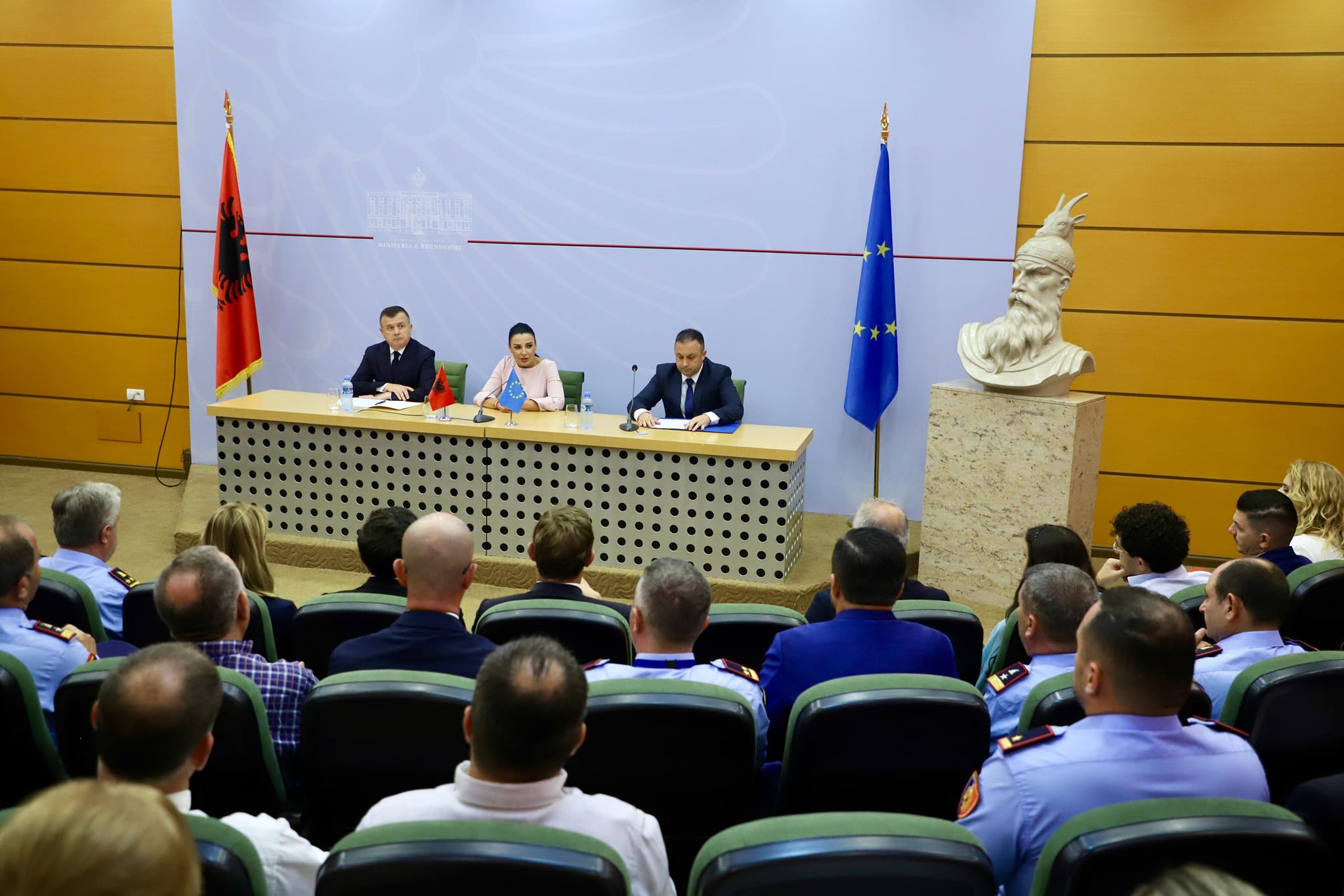 Zv/kryeministrja dhe Ministre e Infrastrukturës dhe Energjisë, Belinda Balluku prezantoi Ministrin e ri të Brendshëm, Ervin Hoxha, në një ceremoni të zhvilluar në Ministrinë e Brendshme, ku morën pjesë zyrtarë e titullarë të institucioneve të varësisë.