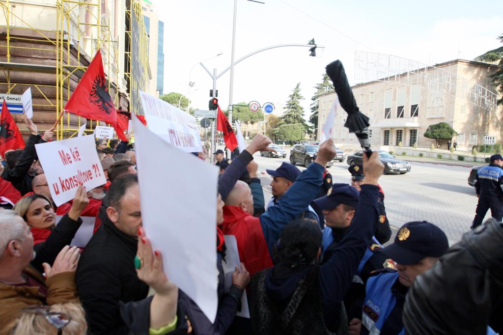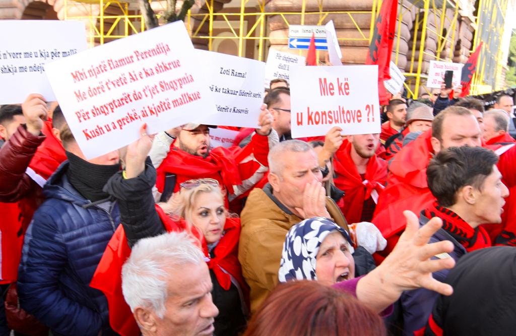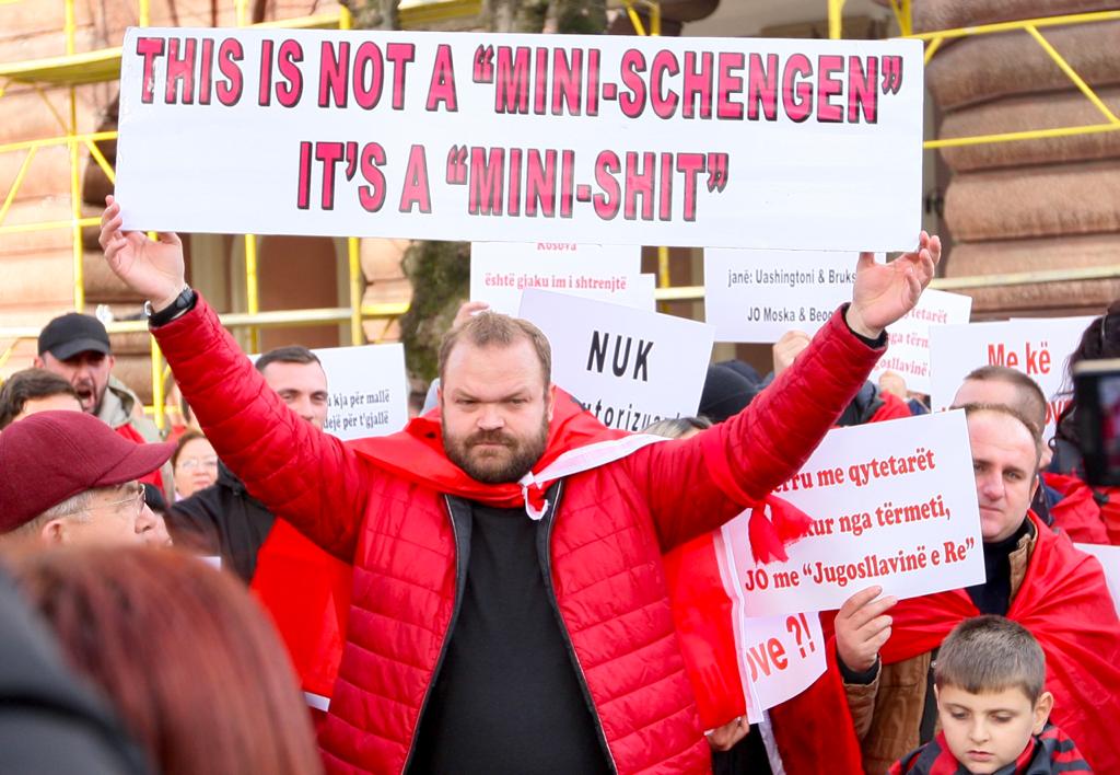 Me thirrjet “Turp turp” është pritur eskorta e kryeministrit Edi Rama dhe pas saj ajo e Presidentit serb, Aleksandër Vuçiç, kur po i afrohej hotelit në Tiranë, ku është planifikuar të mbahet sesioni i liderëve për marrëveshjen ”Mini-Shengeni Ballkanik”. Nisma “Për shqiptarët dielli lind në Perëndim” po protestojnë përpara hotelit ku do të mbahet sesioni plenar i liderëve të Ballkanit Perëndimor. Në samit janë Presidenti i Serbisë, Aleksandër Vuçiç, kryeministri i Maqedonisë së Veriut Zoran Zaev dhe Presidenti i Malit të Zi, Milo Djukanovic.