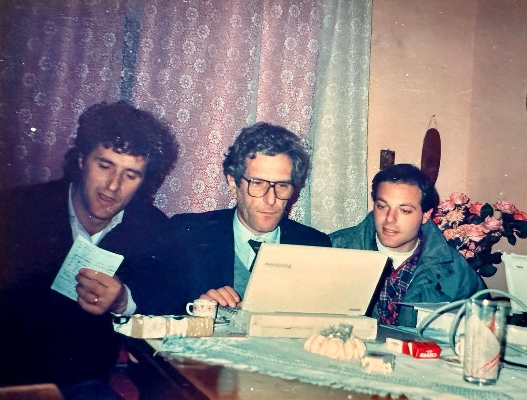 Kjo foto e 31 viteve me pare eshte realizuar ne Vlore, ne Shkurt 1992. I takon fushates se dyte elektorale ne shqiperine pluraliste, asaj per zgjedhjet e 22 marsit 1992. Ne mes eshte Gramoz Pashko, kandidat per deputet i PD ne zonen e Lumit te Vlores. Majtas eshte Alfred Zijai, shef i stafit lokal te Pashkos. Te dy figura tejet te njohura te kohes. Pashko nje nga themeluesit e PD, politikan brilant e me ndikim dhe ish zv.Kryeminister ne qeverine e pare me baze te gjere, ate te stabilitetit. Zijai, futbollist i famshem i Flamurtarit te arte te viteve ‘80 – te dhe i kombetares shqiptare. Ne tavoline eshte lap topi i pare qe perdorej ne Shqiperi, nje Toshiba qe Pashko e merrte kudo me vete, bashke me printerin. Foto eshte ne fund te nje dite te gjate me takime ne shtepine e Fredit. Pashko dhe Zijai nderruan jete thuajse ne te njejten moshe. Pashko me 2006, 51 vjecar dhe Zijai me 2013, 52 vjec. Helikopteri qe po transportonte Pashkon e aksideruar ne bregdetin e Palases humbi lidhjet me aeroportin e Barit 20 minuta perpara se te ulej. Pjeset e helikopterit u gjeten ne thellesi te Adriatikut disa muaj me vone. Bashke me te fluturonte edhe i biri, Rubeni, nje mjek dhe dy pilotet.