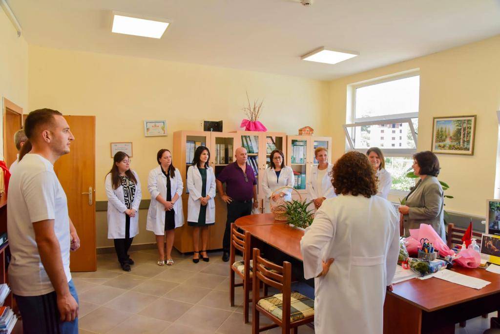 Gjatë vizitës në shkollën “Bashkim Berisha”, Zonja e Parë u takua edhe me stafin pedagogjik të shkollës, të cilin e përgëzoi për punën, përkushtimin, pasionin, mirëmbajtjen e mjediseve dhe laboratorëve.