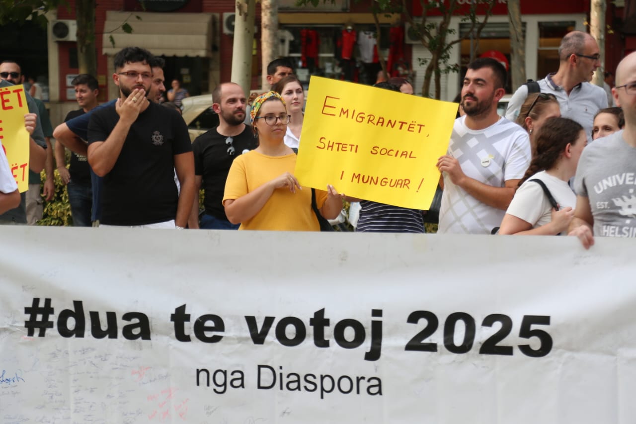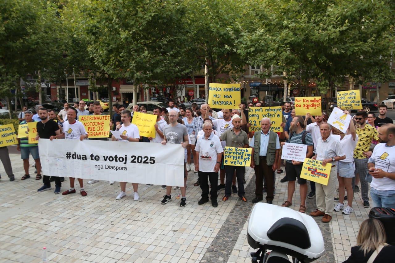 Një protestë modeste, por me thirrje të forta u mbajt nga diaspora shqiptare para Kuvendit, ku u kërkua që të ushtrojnë të drejtën e votës në zgjedhjet e ardhshme parlamentare të vitit 2025. “Dua të votoj në 2025” është motoja e kësaj proteste të thirru nga diaspora, ndërsa shumë emigrantë mbajnë në duar pankarta me mesazhe për politikën.