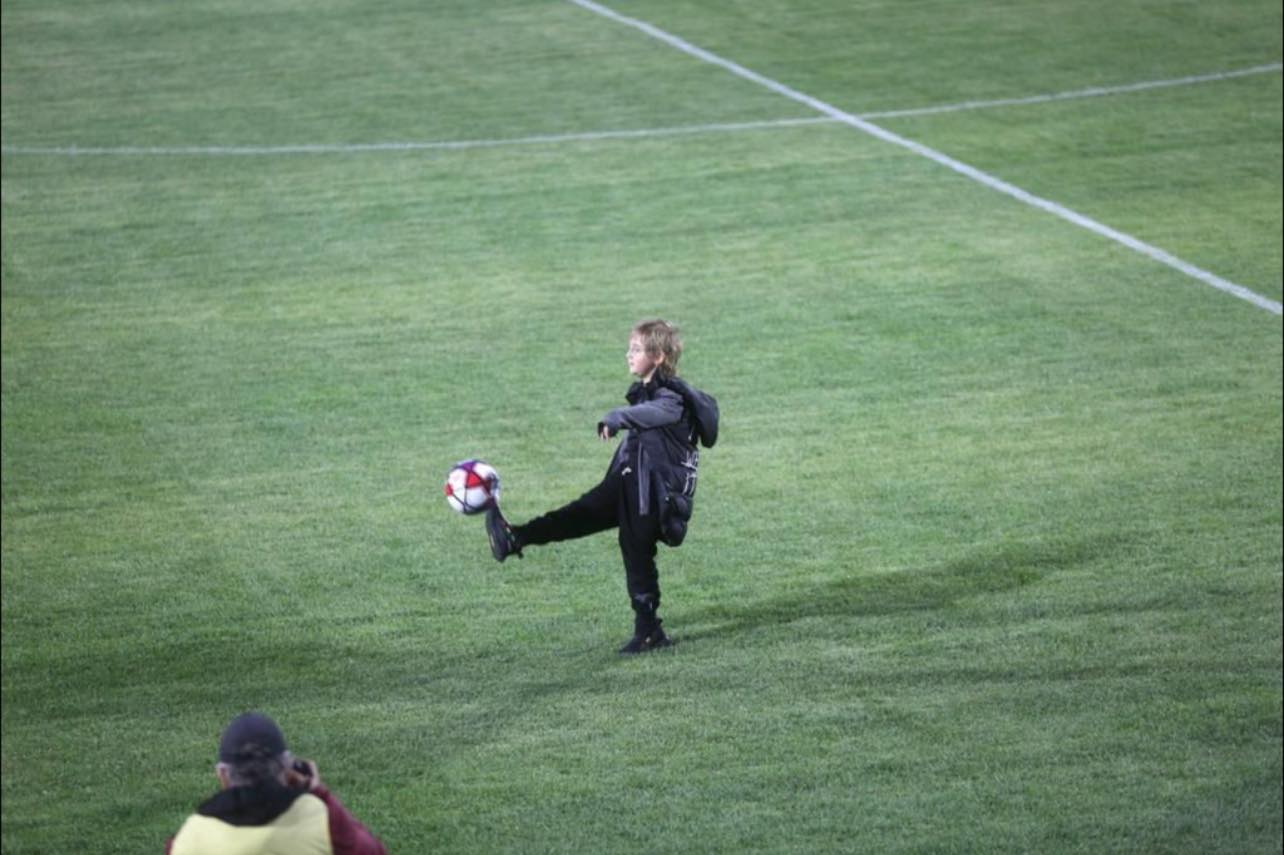 Por foto që po bën namin në rrjete sociale është momenti kur Zaho E. Rama shqelmon topin i pari në fushën e re. Janë me mijë e mijëra klikime të fotos.