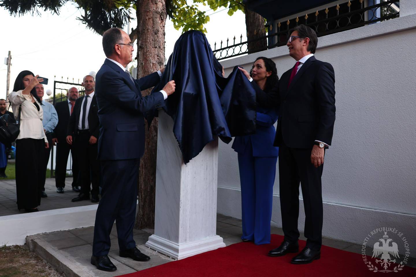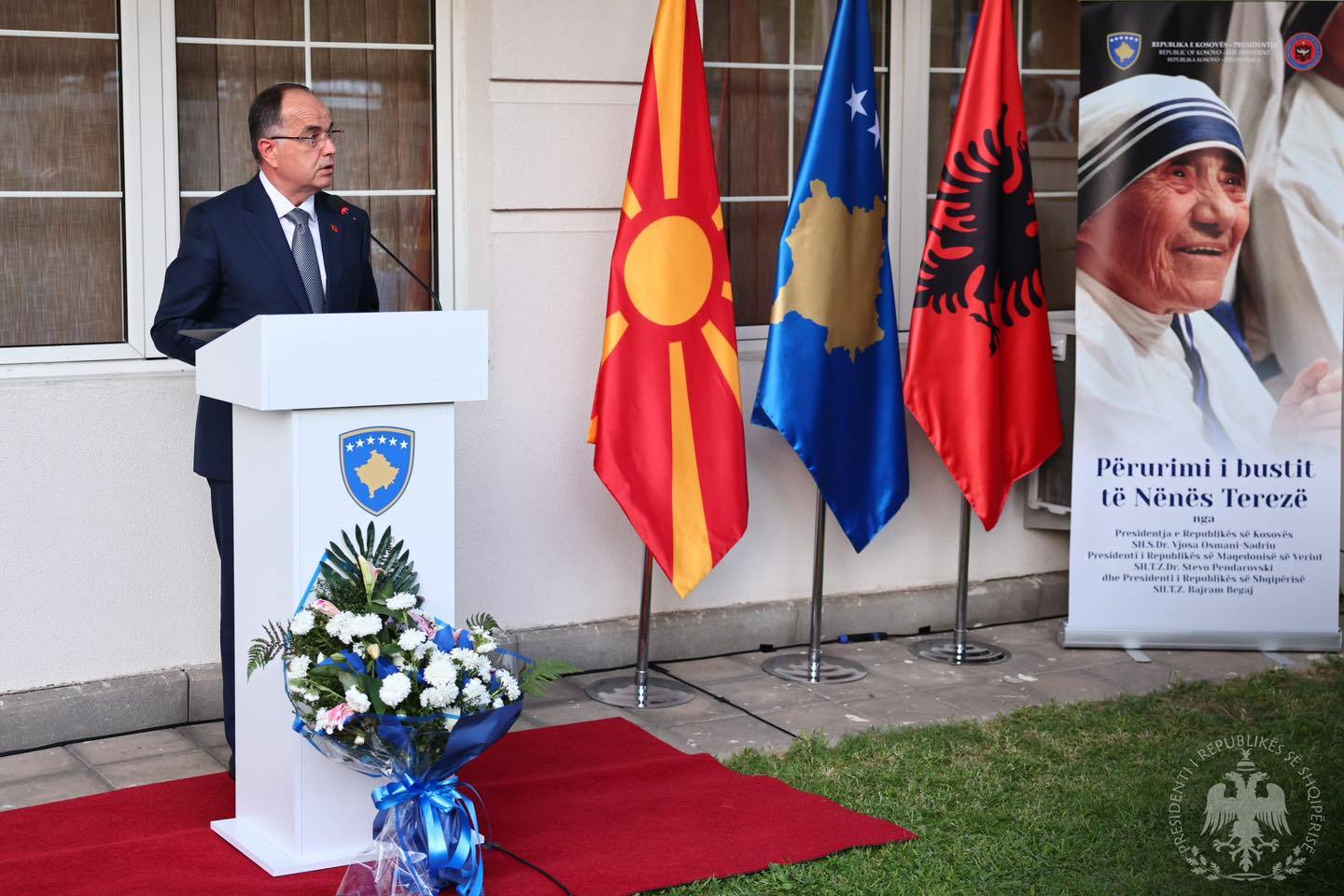 Presidenti i Republikës, Bajram Begaj, së bashku me Presidenten e Republikës së Kosovës, Vjosa Osmani Sadriu, si dhe me Presidentin e Maqedonisë së Veriut, Stevo Pendarovski, morën pjesën në inaugurimin e bustit të Nënë Terezës në oborrin e Ambasadës së Kosovës në Shkup.