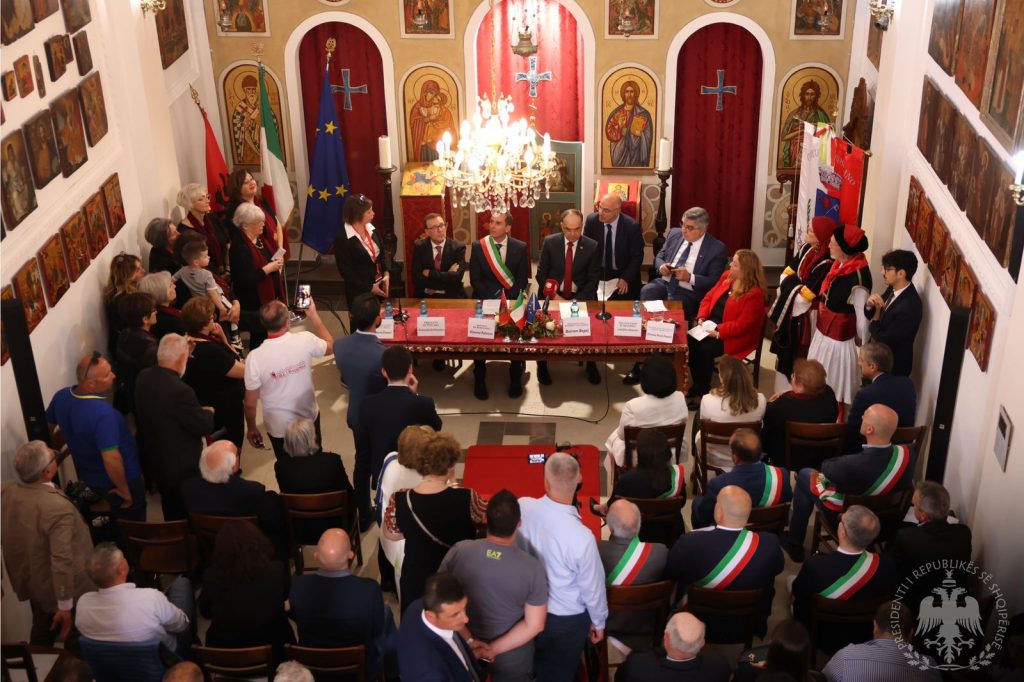Arbëreshët po ashtu edhe shqiptarët e ardhur pas viteve ’90, asnjëherë nuk kanë qenë të rrezikuar nga asimilimi i gjuhës së tyre apo traditat e tyre. Presidenti shprehu gëzimin e tij që tashmë në këshillat komunalë ka shqiptarë të zgjedhur, si dhe që në Peskara ishte hapur për herë të parë një shkollë shqipe.